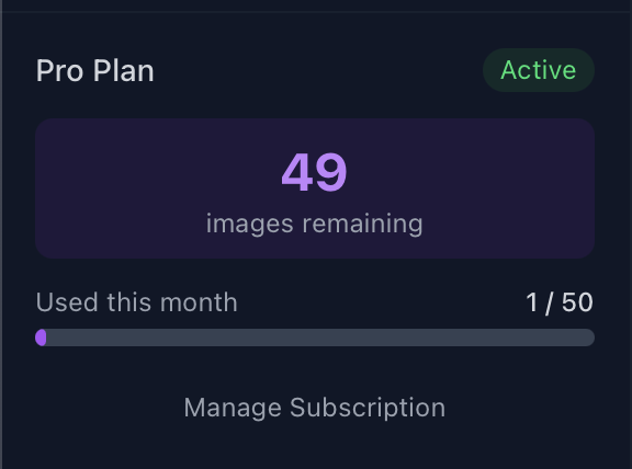 - Pro Plan: $9.99/month (or $99.90/year for 17% savings) for 50 images per month